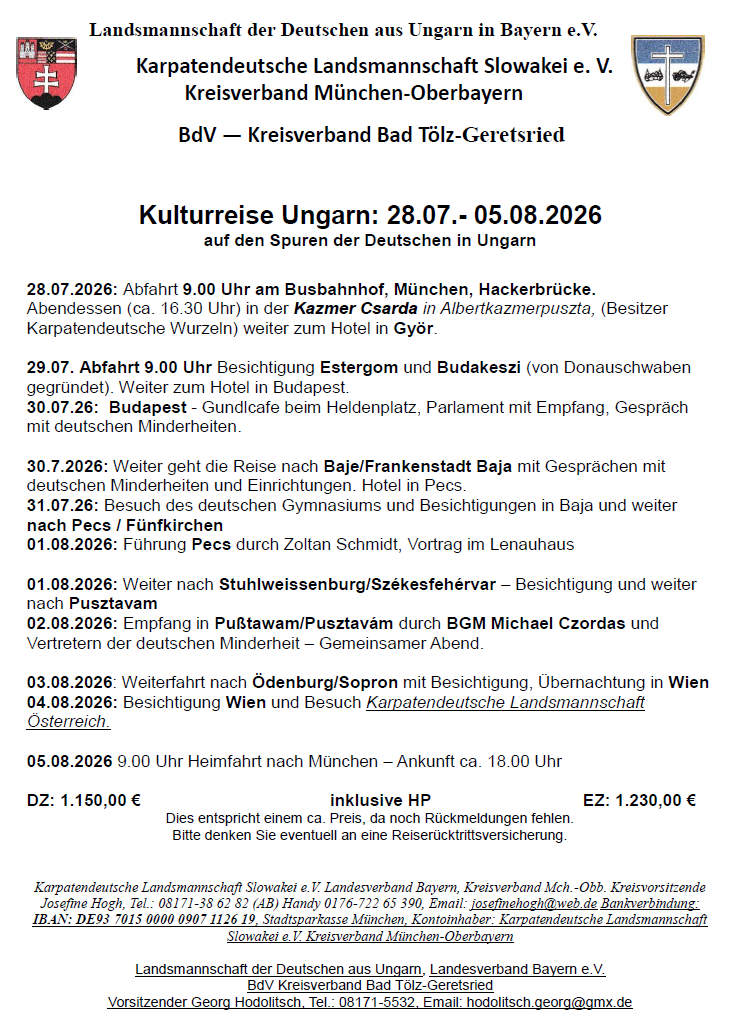 Zu den Terminen 2026 und zur Ungarnreise 2026 bitte weiter nach unten scrollen!